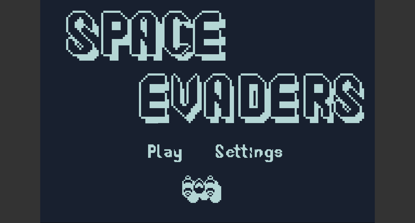 - Settings screen where you can control the volume of music and sounds, as well as toggling screen shake and inverting the color palette.